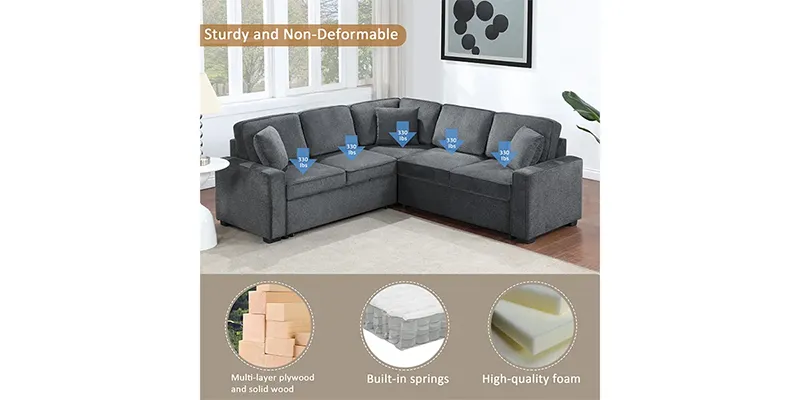 And that’s not all – this combination sofa has a pull-out bed that converts into additional sleeping space! The simple, flexible, and convenient design allows you to effortlessly configure your living room space to suit your needs. This pull-out sofa is perfect for hosting unexpected guests and is a must-have for every home!