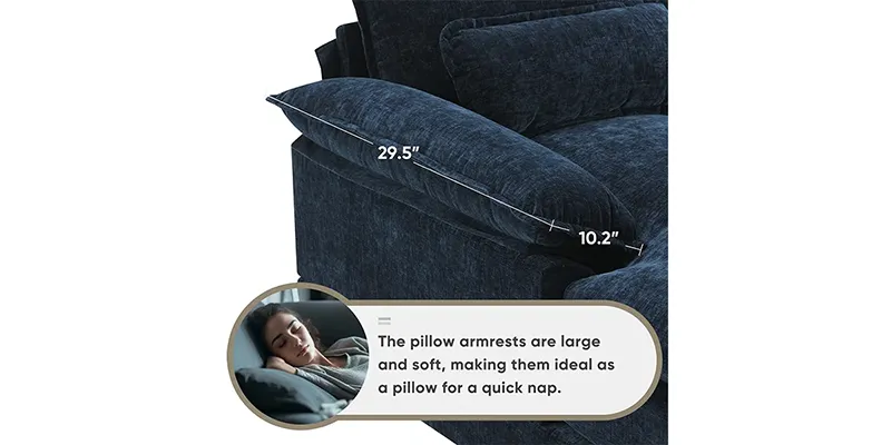 • Comfortable design: The white sofa is made of high-quality chenille, which is soft, comfortable and durable.Armrest pillows on both sides of the sofa can relax your head, and there are also 4 lumbar pillows to give better lumbar support, making it easy to adjust your posture and reduce discomfort and fatigue.