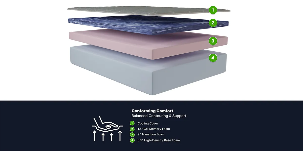 Upgrade your mornings with the GhostBed 10″ memory foam mattress, designed with 4 layers of comfort, cooling and support, with exceptional all-night pressure relief. 3 layers of foam provide a balanced, medium-firm feel that’s ideal for back, side and stomach sleepers. The gel memory foam layer gently contours your pressure points, while 2″ transition foam and 6.5″ high-density base foam work together to round out your comfort and support.