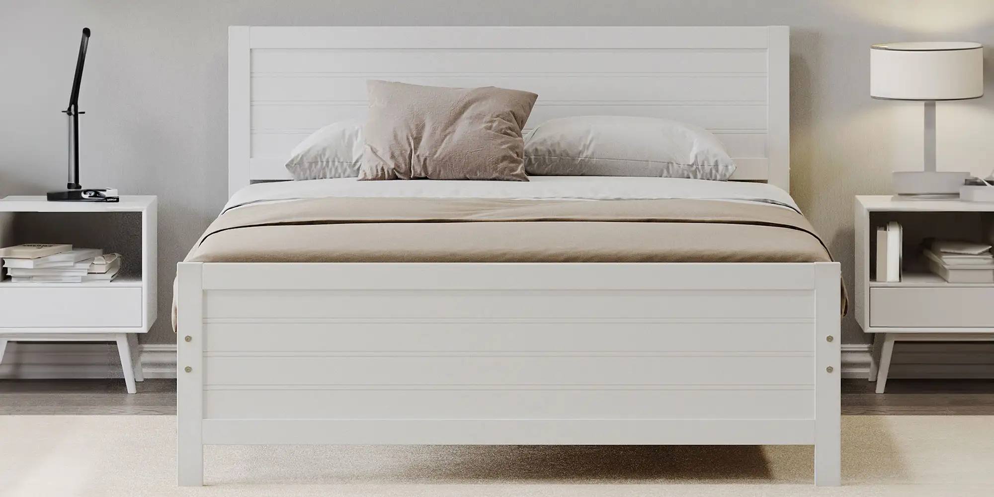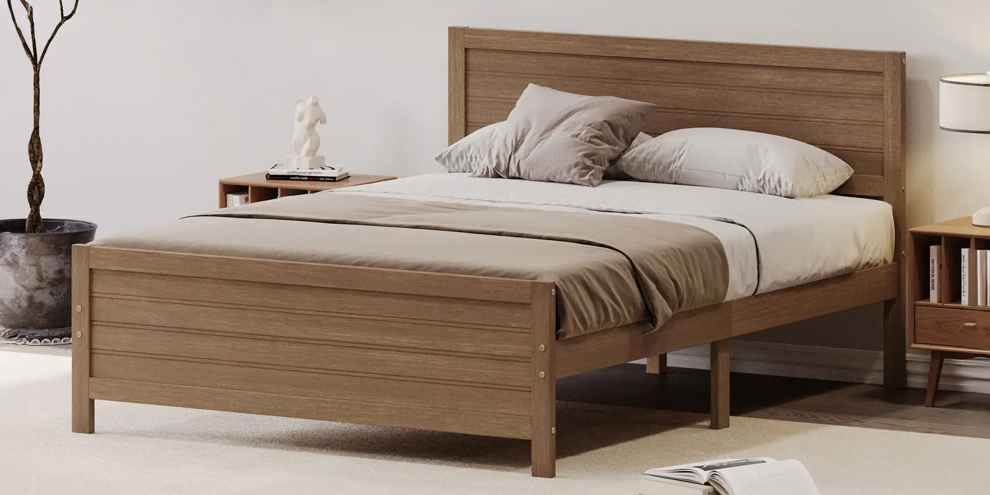 • Solid & Stable Wood Frame: The bed frame is made of solid pine wood and premium engineered wood that are characterized by high strength and good toughness. Additional support legs on each side further enhance the overall stability of the bed frame.