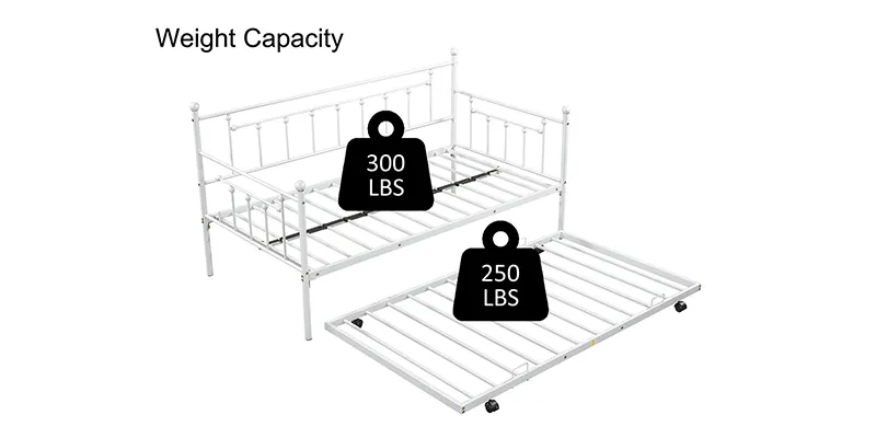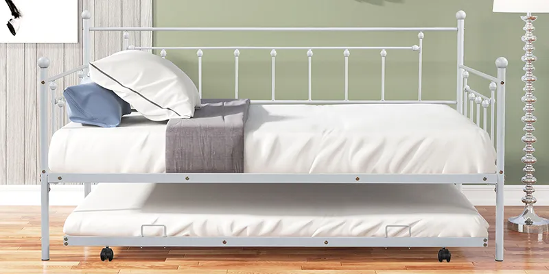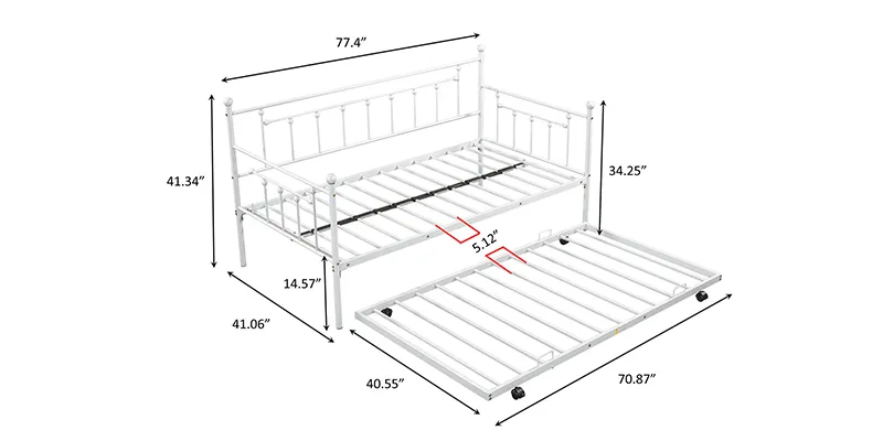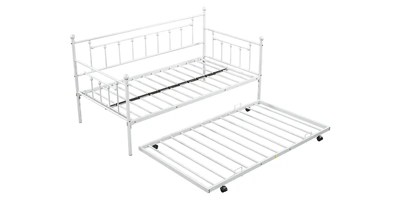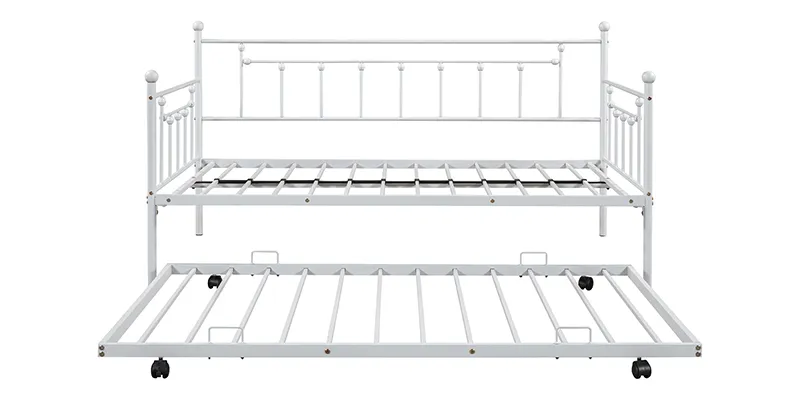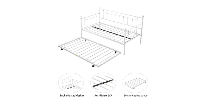 Stylish and Functional Solid Metal Twin Daybed with Trundle and Anti-Noise Design
