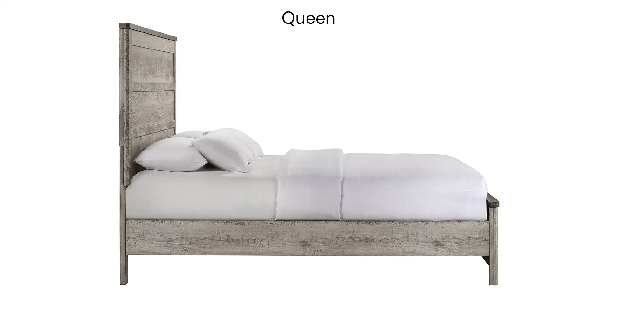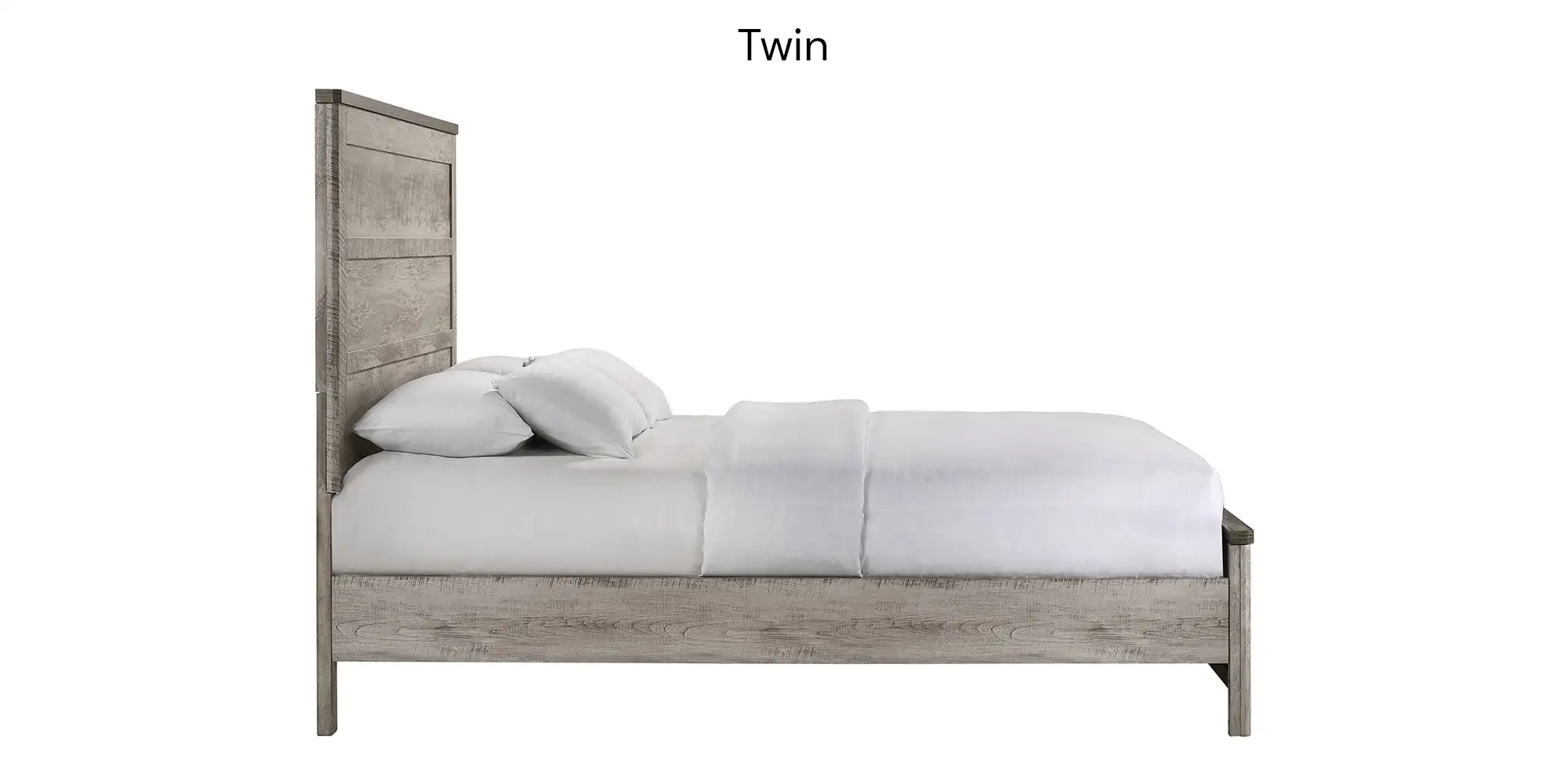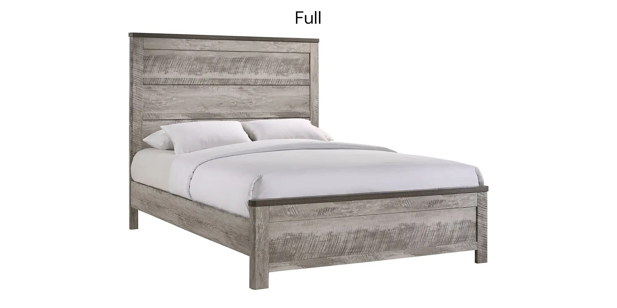 The Millers Cove Full Panel Bed is going to look great in your bedroom! This bed features a panel inset in not only the headboard, but also in the footboard; instantly adding extra flair to this already stylish piece. This bed has a 3D paper finish, giving a cool update to a traditional bedroom staple. The top of the headboard and footboard are finished in a dark gray, and contrast beautiFully with the light gray color on the rest of the piece. The legs of the footboard are block, matching back to the other pieces in the collection. Add this panel bed to your home today for a look you’ll love coming home to day after day!