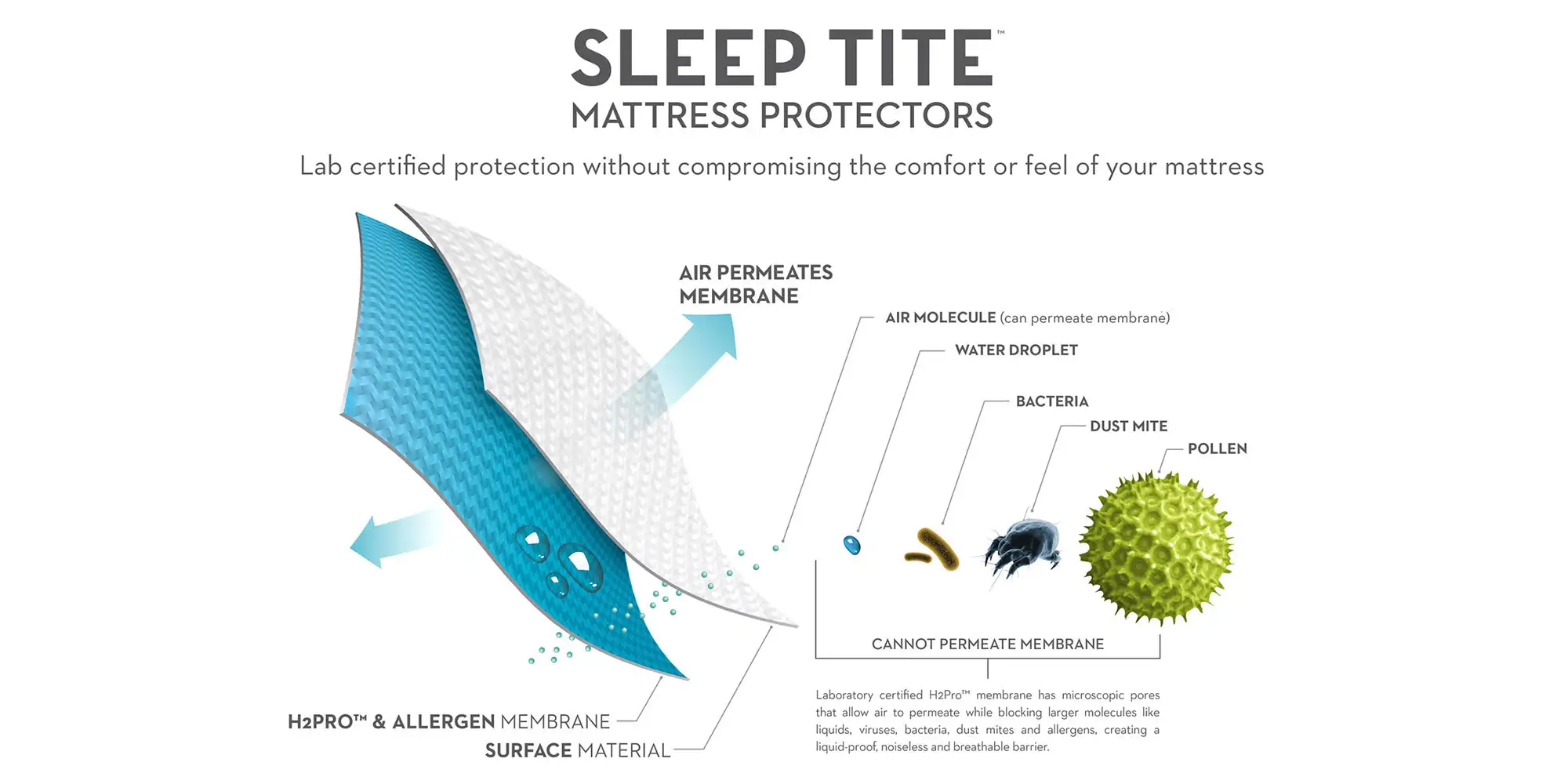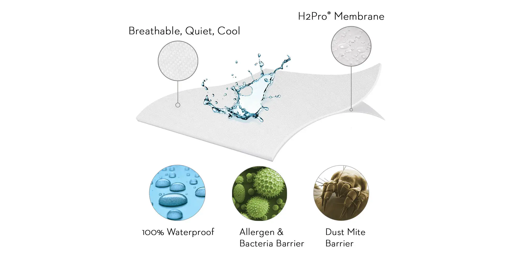 The Pr1me® Terry mattress protector features a hypoallergenic and absorbent cotton terry surface that sleeps comfortably and will not change the feel of the mattress. It also features the laboratory-certified H2Pro® liquid-proof membrane which creates a quiet, and breathable barrier against allergens and dust mites. The universal fit elastic ensures a secure fit for mattress depths of 6″-22″. Pillow protectors are also available to create a healthy sleeping environment.