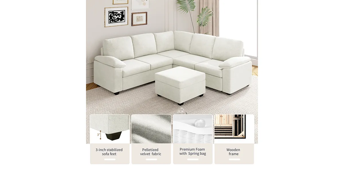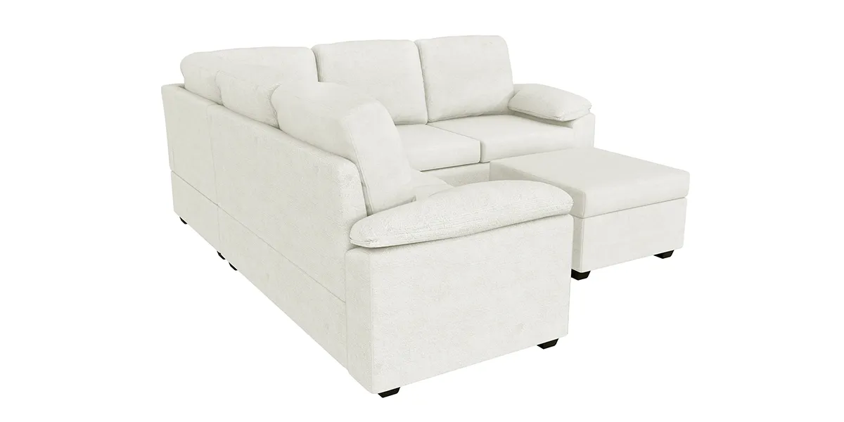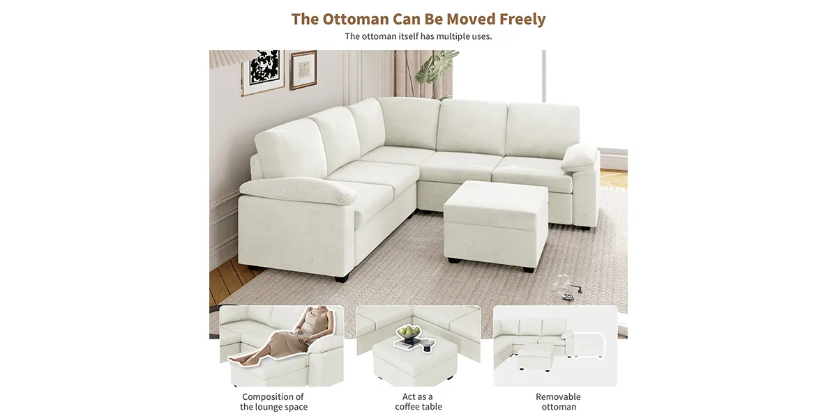The L-shape design provides ample seating space, making it perfect for large families or entertaining guests. The ottoman allows for customizable comfort, as it can be adjusted to suit individual preferences. Additionally, the armrest pillow provide extra support and comfort, making it easier to relax and unwind. The L-shape design also allows for flexibility in room layout, as it can be placed in a corner or used to divide a larger space.