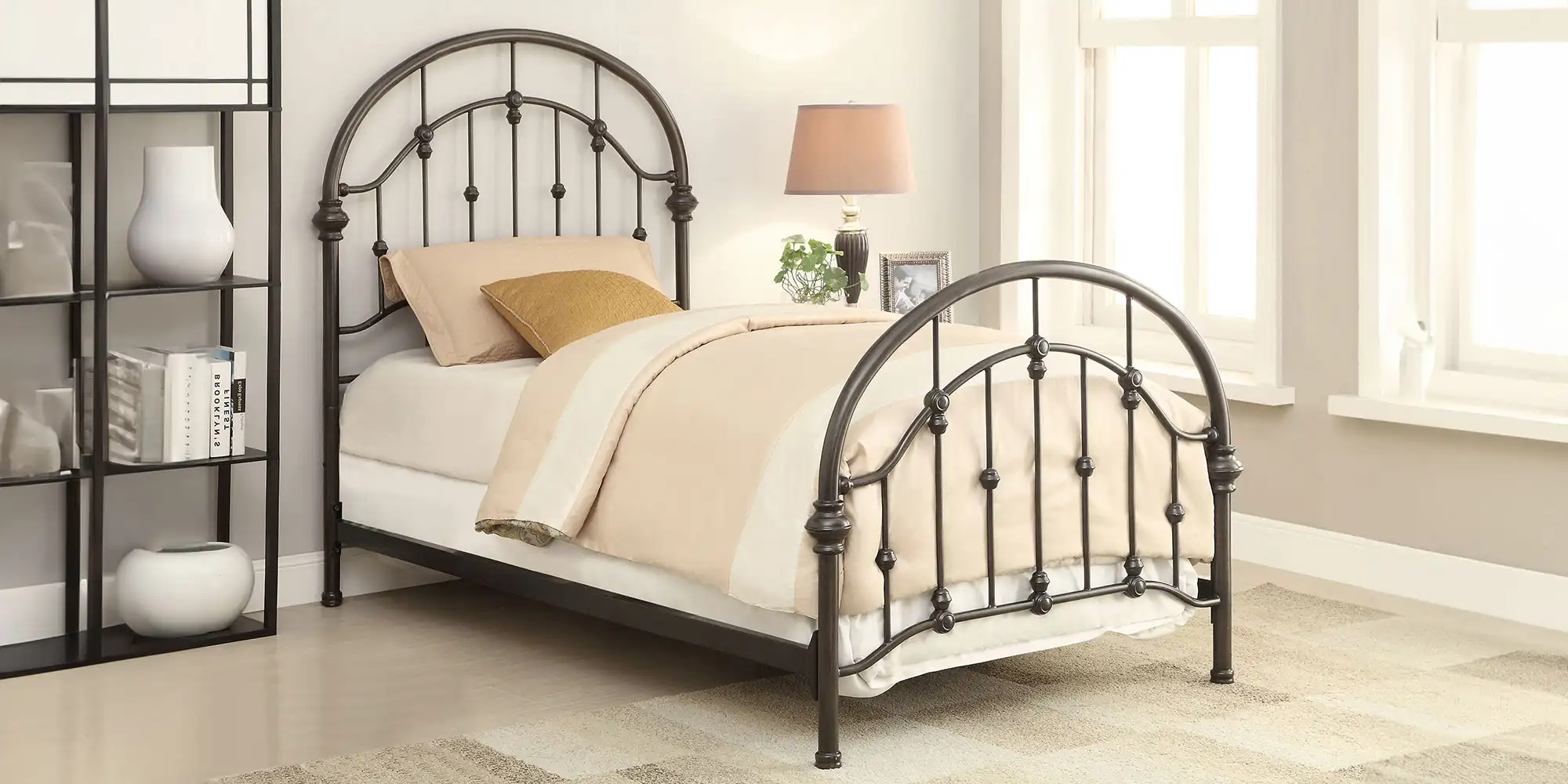 Accentuate your bedroom’s natural style. The timeless beauty of this stunning Queen bed adds an element of sophistication to any decor. Its chic headboard and footboard from a graceFully arched silhouette. Its bronze finish blends beautiFully with a wide variety of color palettes. Smooth, sleek lines of iron adorn its frame, completing its classic look.