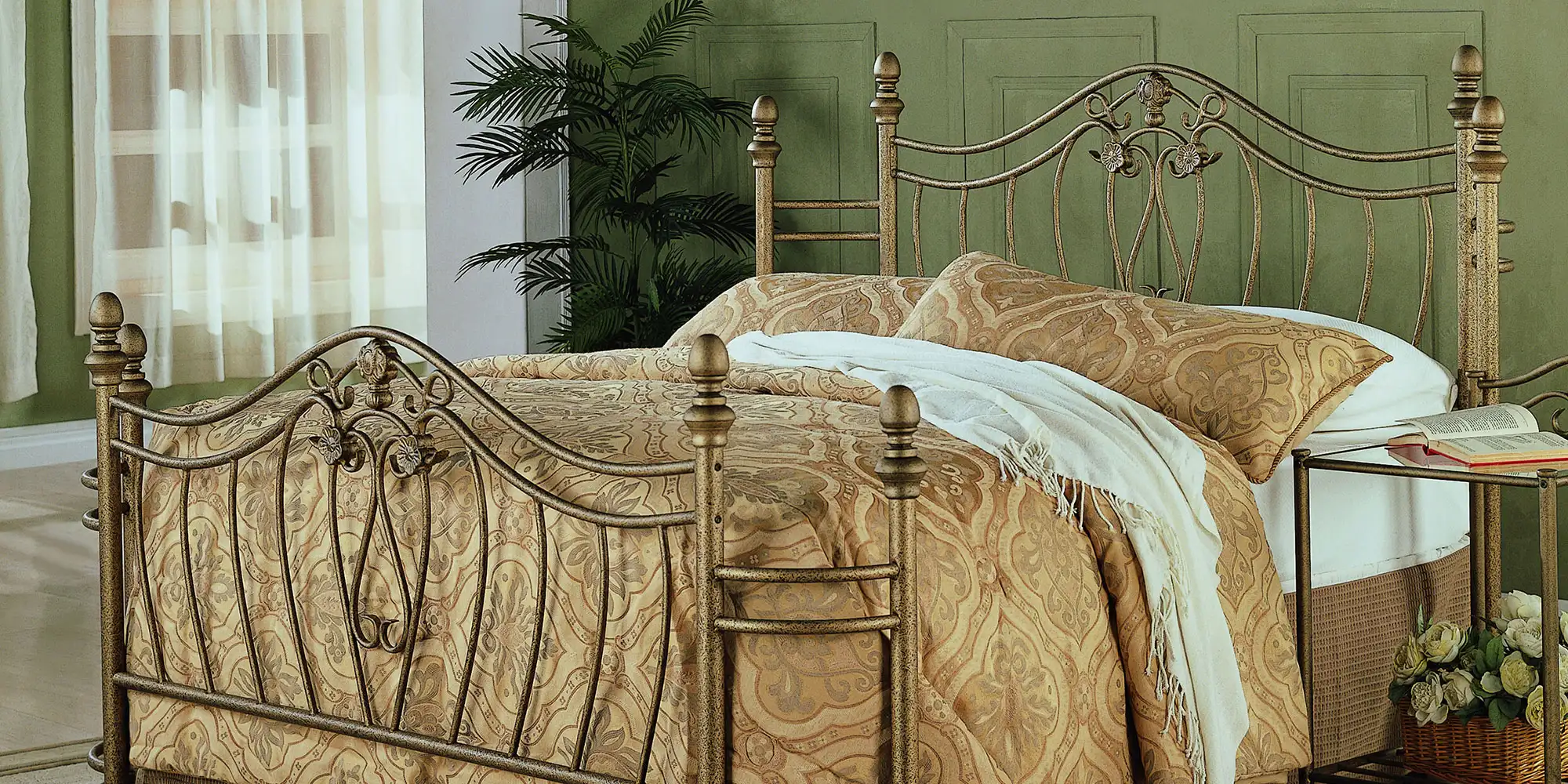 Sleep in tony elegance in this beautiful Sydney metal bed. Footboard and high headboard are both designed with glamorous curved crowns and swirling floral motifs. Both the headboard and footboard feature a timeless wraparound design that’s always in vogue. Bed is finished in rich antique brushed gold that is absolutely gorgeous. Regardless of your bedroom or home decor, this bed will blend in yet steal the show.